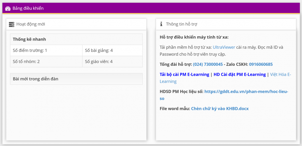 - Thầy cô truy cập vào tài khoản của mình ở mục bảng điều khiển => làm theo hướng dẫn tại mục Thông tin hỗ trợ