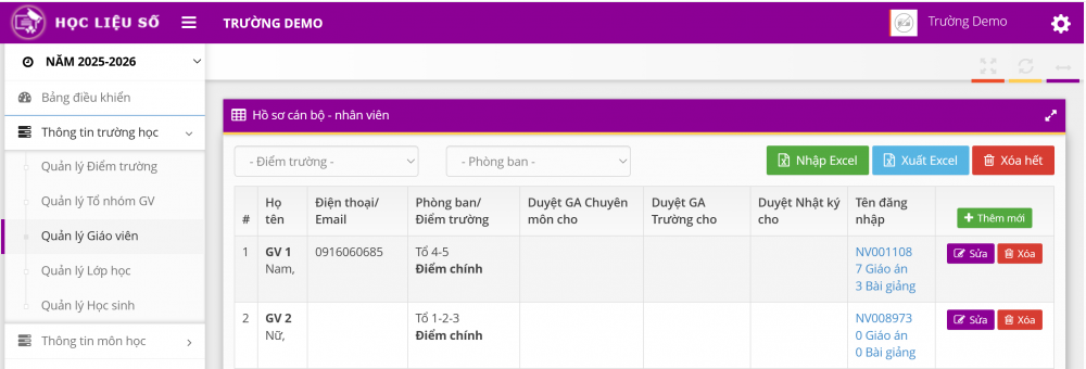 Thầy cô đăng nhập vào phần mềm bằng tài khoản trường, và cập nhật Thông tin trường học => Cấp phát tài khoản cho các giáo viên: